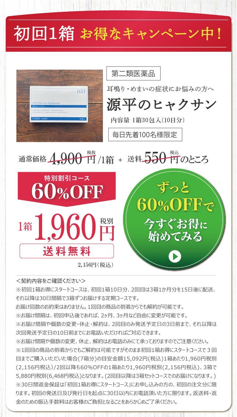 耳鳴りに飲んで効くヒャクサン 通常価格での購入 送料別途