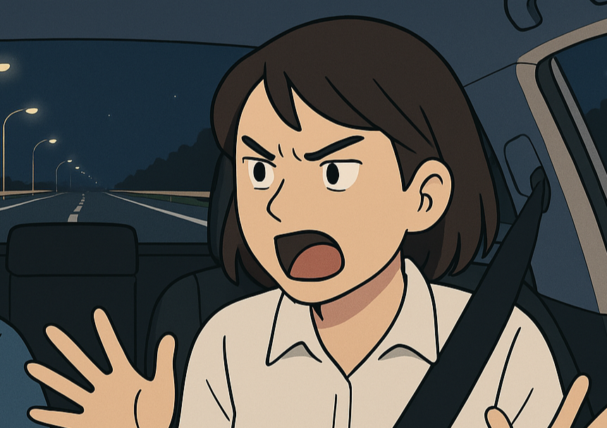 妻の怒声と共に勢いよく窓を全開にされ、冷えた風が車内に吹きこんだ。