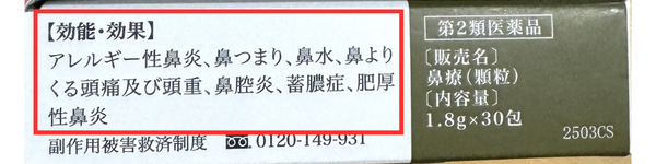 お鼻の症状に特化した効能効果!
